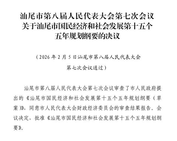 汕尾市第八届人民代表大会第七次会议关于汕尾市国民经济和社会发展第十五个五年规划纲要的决议
