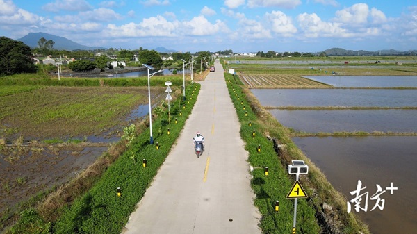 除了房前屋后,进村道路两侧、小公园、小广场边,也是满眼青绿。海丰县可塘镇罗山村党总支书记、村委会主任郭志坚告诉记者:“今年以来,罗山村绿美生态建设工作开展得热火朝天,村“两委”干部积极发动乡贤,带领群众种植花草树木,3次活动共种下约700棵树木,擦亮了乡村绿色底色,也让村容村貌焕然一新。”