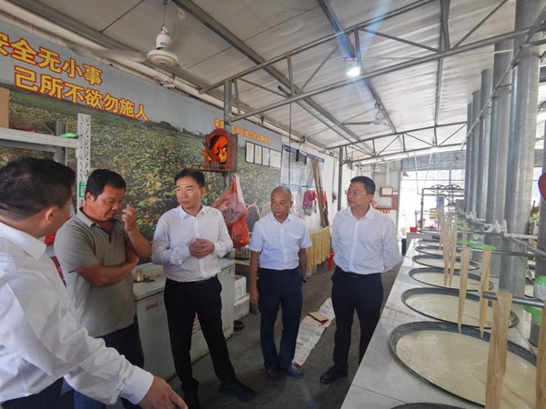 在博美镇“博美豆匠”腐竹厂和承业义隆糕饼有限公司,林军深入生产车间、原料仓库及电商直播间,仔细检查食品加工流程、燃气使用安全和消防设施配备情况。他指出,特色食品产业是镇域经济的重要支柱,也是促进群众增收的关键抓手,必须坚持安全与发展并重。要严格规范生产操作规程,加强从业人员安全教育培训,重点排查燃气泄漏、电气线路老化等风险隐患;要依托电商平台拓宽“线上+线下”销售渠道,提升产品附加值和市场竞争力,培育区域品牌;要压实食品安全“两个责任”,强化全链条监管,从原料采购、加工储存到成品出厂全程把控,切实保障群众“舌尖上的安全”。